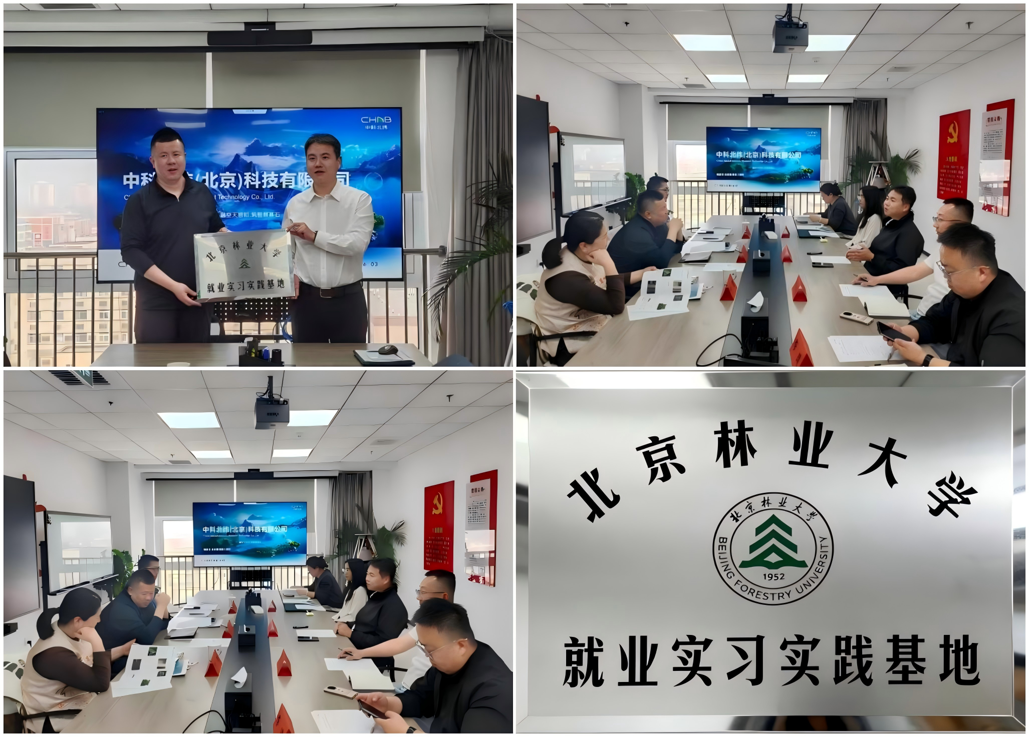 同时,双方正式达成实习实践合作共识,并为公司颁发 “北京林业大学就业实习实践基地” 铜牌,标志着双方校企合作正式进入落地阶段。