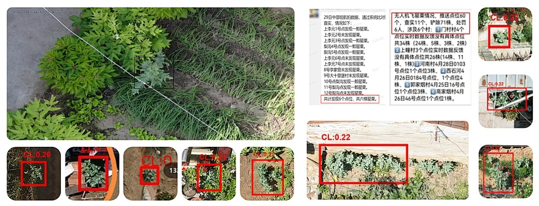 功能定位:专为罂粟全面普查场景设计,支持单张影像/正射影像自动检测,输出疑似目标坐标、报告及标记图片。