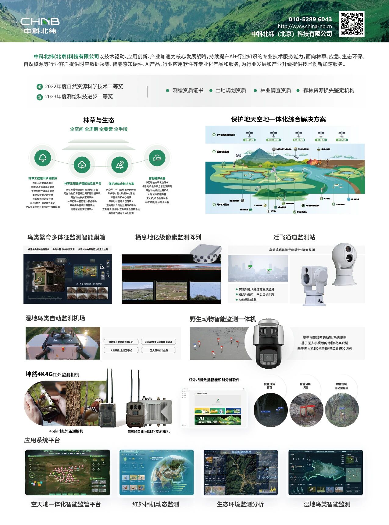 公司聚焦鸟类保护等生态领域,通过前沿技术研发与产业化应用,搭建空天地一体化智能监管平台;在智能监测方面,依托AI视觉识别与物联网技术,实现湿地鸟类种群动态的实时追踪与数据分析、生态环境监测分析;为鸟类保护提供系统性技术支撑与解决方案。
